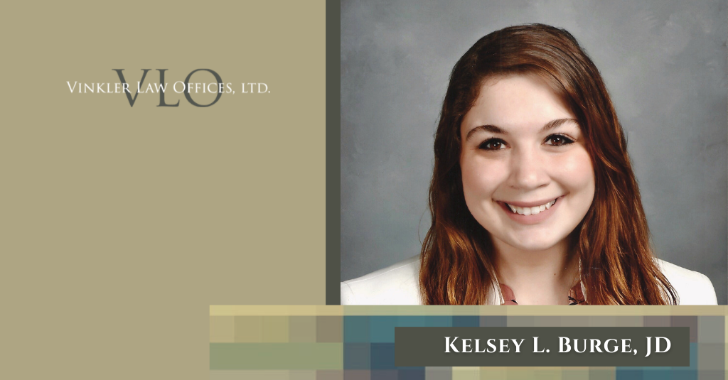 On behalf of Vinkler Law Offices, the firm is pleased to announce they have hired Kelsey J. Burge who began with the firm in July 2020. We expect she will pursue our clients’ cases with energy and commitment after sitting for the Illinois Bar Exam in October.